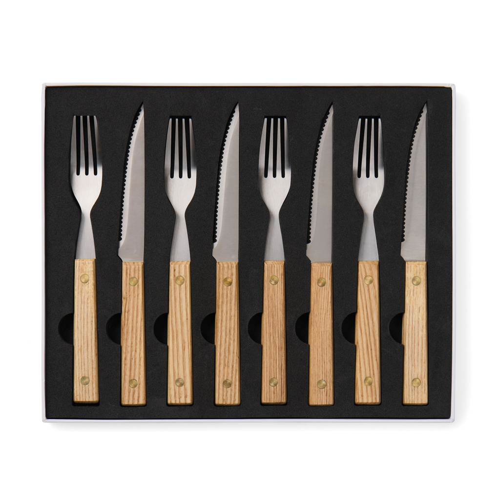 Katke laud selle ajatu 8-osalise BBQ-söögiriistade komplektiga, mis on loodud Skandinaavia lihtsust silmas pidades. See FSC®-sertifikaadiga tuhapuidust ja kvaliteetsest roostevabast terasest valmistatud komplekt sisaldab nelja teravat nuga ja nelja mugava käepidemega kahvlit. Seda komplekti pole mitte ainult rõõm kasutada, vaid see on ka stiilne lisand igale grill- või einestamiskogemusele.