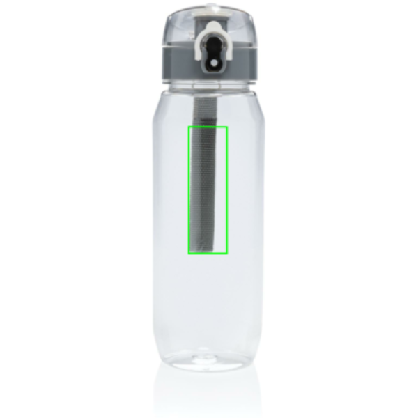 See RCS RPET veepudel on lekkekindel ja sellel on lukustatav ja ühe käega juhitav kaas. Sellel on ka käepide, mis hõlbustab kaasaskandmist. Pudeli korpus on valmistatud 100% RCS sertifikaadiga RPET-st. RCS-sertifikaat tagab taaskasutatud materjalide täielikult sertifitseeritud tarneahela. Ainult käsipesu. See toode on mõeldud ainult külmade jookide jaoks. Taaskasutatud kogusisaldus: 73% eseme kogukaalust. BPA vaba. Mahutavus 800ml. Kaasa arvatud FSC®-sertifikaadiga kraft-kinkepakend.