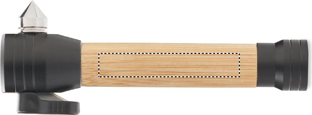 Logotrade mainoslahja ja liikelahja kuva: 3 in 1 bambu taskulamppu, jossa on hätävasara ja turvavyöleikkuri mukautettavalla painatuksella