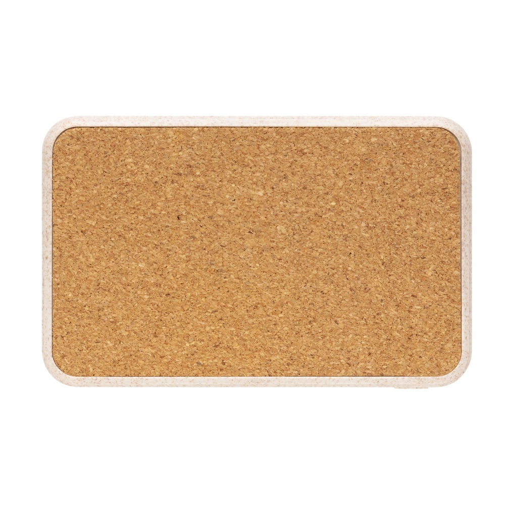 5000mAh taskukokoinen varavirtalähde. Päällispuoli on valmistettu luonnonkorkista ja kotelo 35% vehnänoljista sekoitettuna ABS-muoviin. Täyteenladattuna voit ladata tällä puhelimesi jopa kolme kertaa. Varavirtalähteessä on kestävä A-luokan 5000mAh:n litiumpolymeeriakku. Merkkivalot ilmaisevat jäljelllä olevan virran määrän, joten tiedät aina, milloin ladata tuote uudelleen. Tyypin C sisääntulo 5V/2A Micro USB sisääntulo 5V/2A. Ulostulo 5V/2A. Tuote ja lisätarvikkeet 100% PVC vapaita.