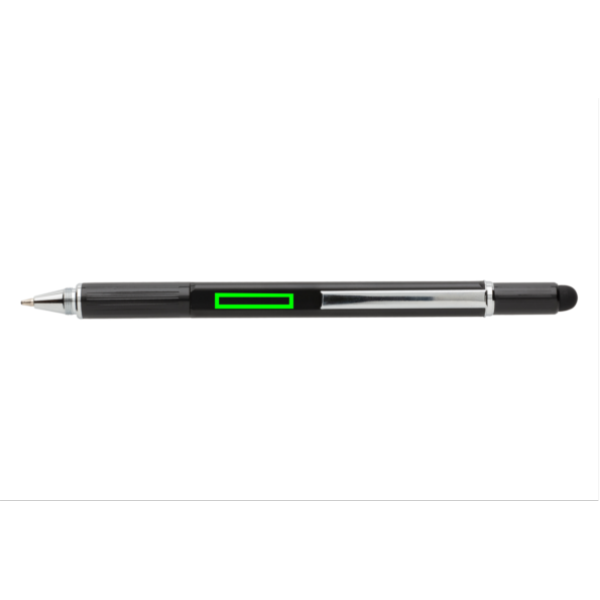 Kynä usealla toiminnolla: viivoitin (7cm), vatupassi, ruuvimeisseli, kosketuskynän pää ja kuulakärkikynä sinisellä musteella (jopa 400m). Tehty korkealaatuisesta messinkimateriaalista alumiiniklipillä.