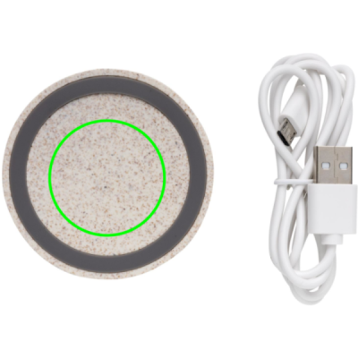 Logo trade liikelahja kuva: 5W langaton latausalusta vehnänoljesta