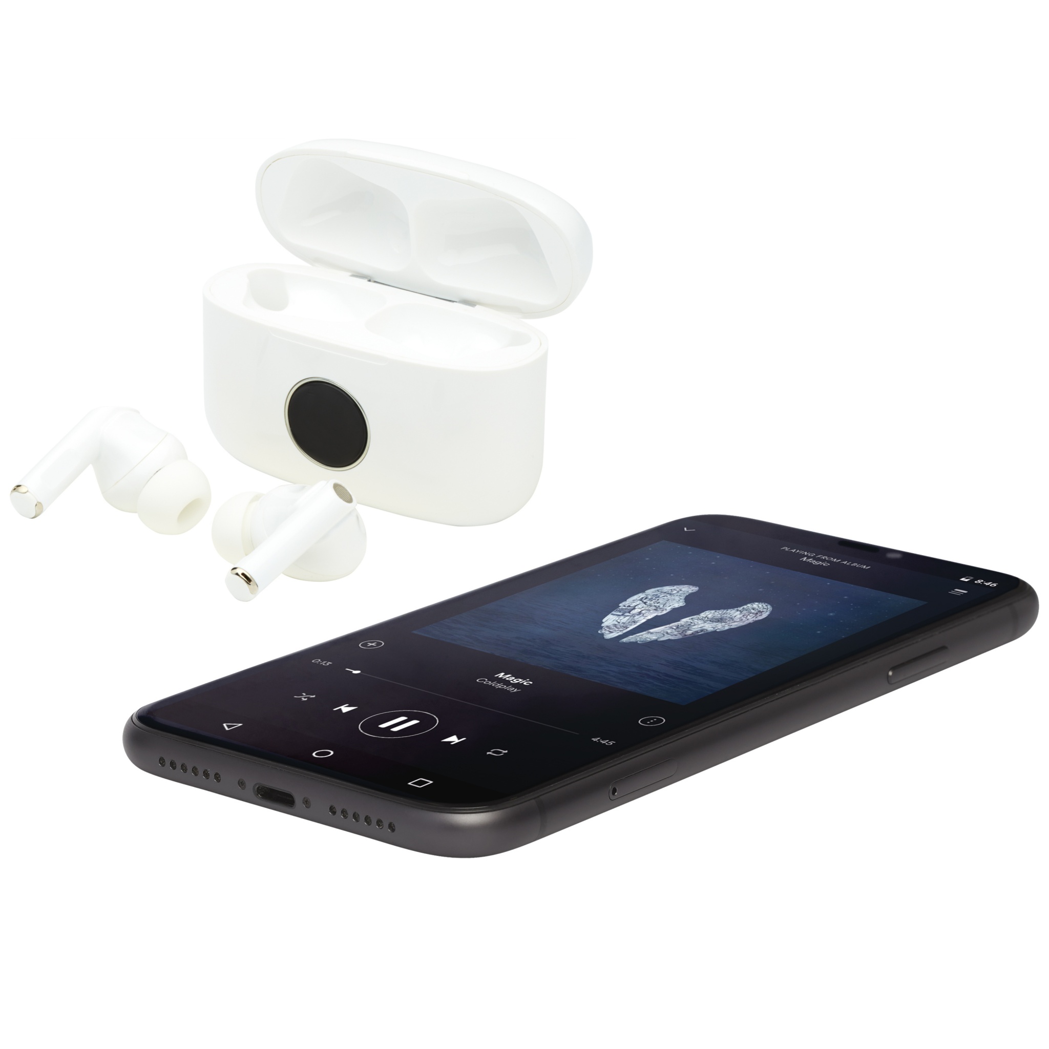 TWS-nappikuulokkeet (True Wireless Stereo), joissa on aktiivinen melunvaimennus (ANC), vähentävät taustamelua jopa 20 dB ja tarjoavat upean musiikkikokemuksen myös junassa, lentokoneessa, bussissa tai muissa paikoissa, joissa on paljon ei-toivottua melua. Sisäänrakennettu monitoimintopainikkeen tuki ääniavustajan aktivoimiseksi, kätevä ohjaus toiston / keskeytyksen / vastaamisen / hylkäämisen / seuraavan kappaleen / edellisen kappaleen / äänenvoimakkuuden lisäyksen / äänenvoimakkuuden vähennyksen osalta. "Läpinäkyvässä tilassa" nappikuulokkeet lisäävät ääntä ulkopuolelta sisäänrakennetulla ohjelmoinnilla, jonka avulla voit seurata ympäristöä kuulokkeita käytettäessä. Toistoaika maksimiäänenvoimakkuudella ANC:n ollessa päällä on noin 3 tuntia. Nappikuulokkeet voidaan ladata 4 kertaa 0-100% yhdellä latauksella. Bluetooth® 5.0 tukee jopa 10 metrin etäisyyttä. Mukana 3 säädettävää korvanappia ja TPE-latauskaapeli. Toimitetaan Premium-lahjapakkauksessa.