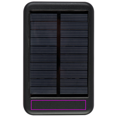 Aurinkovoimapankki (varustettu 20 aurinkopaneelilla) metallista, kapasiteetti 4000 mAh ja USB-latauskaapeli. Voit siis ladata älypuhelimesi tai tablettisi liikkeellä ollessasi ilman pistorasiaa. Tulostamme logosi aurinkokentän alle.