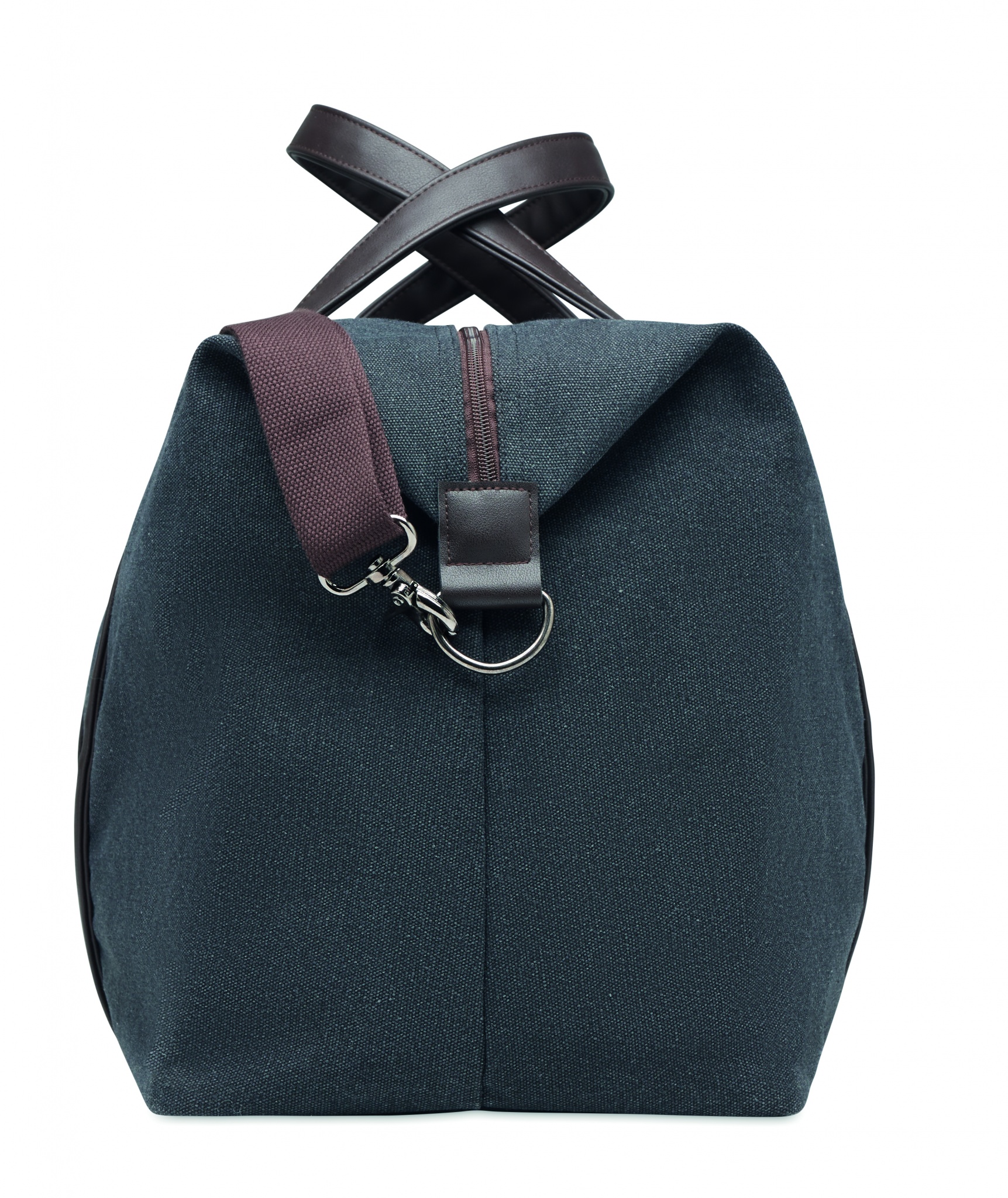 450 gr/m² laukku pestyä canvasta, PU yksityiskohdilla ja RPET 210D vuorauksella. Sisältää erillisen taskun kenkien kuljettamiseen ja säädettävän/ irroitettavan olkahihnan.
