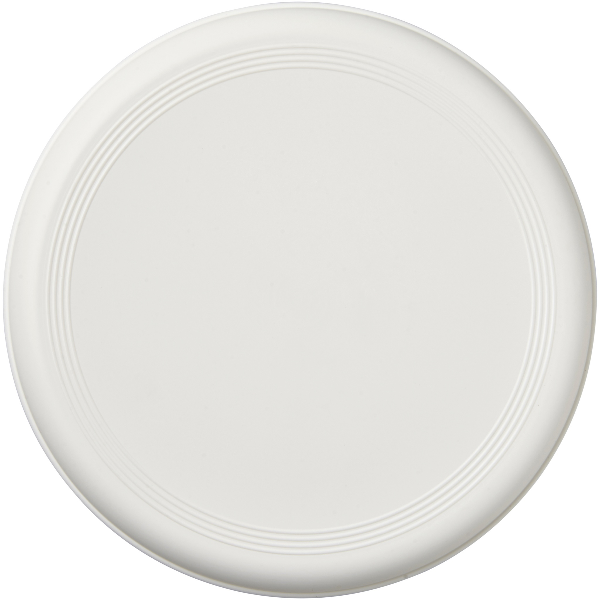 Frisbee, joka on valmistettu kierrätetystä muovista. Materiaalissa voi olla struktuuria kierrätetyn materiaalin ominaisuuden vuoksi. EN71-hyväksytty.