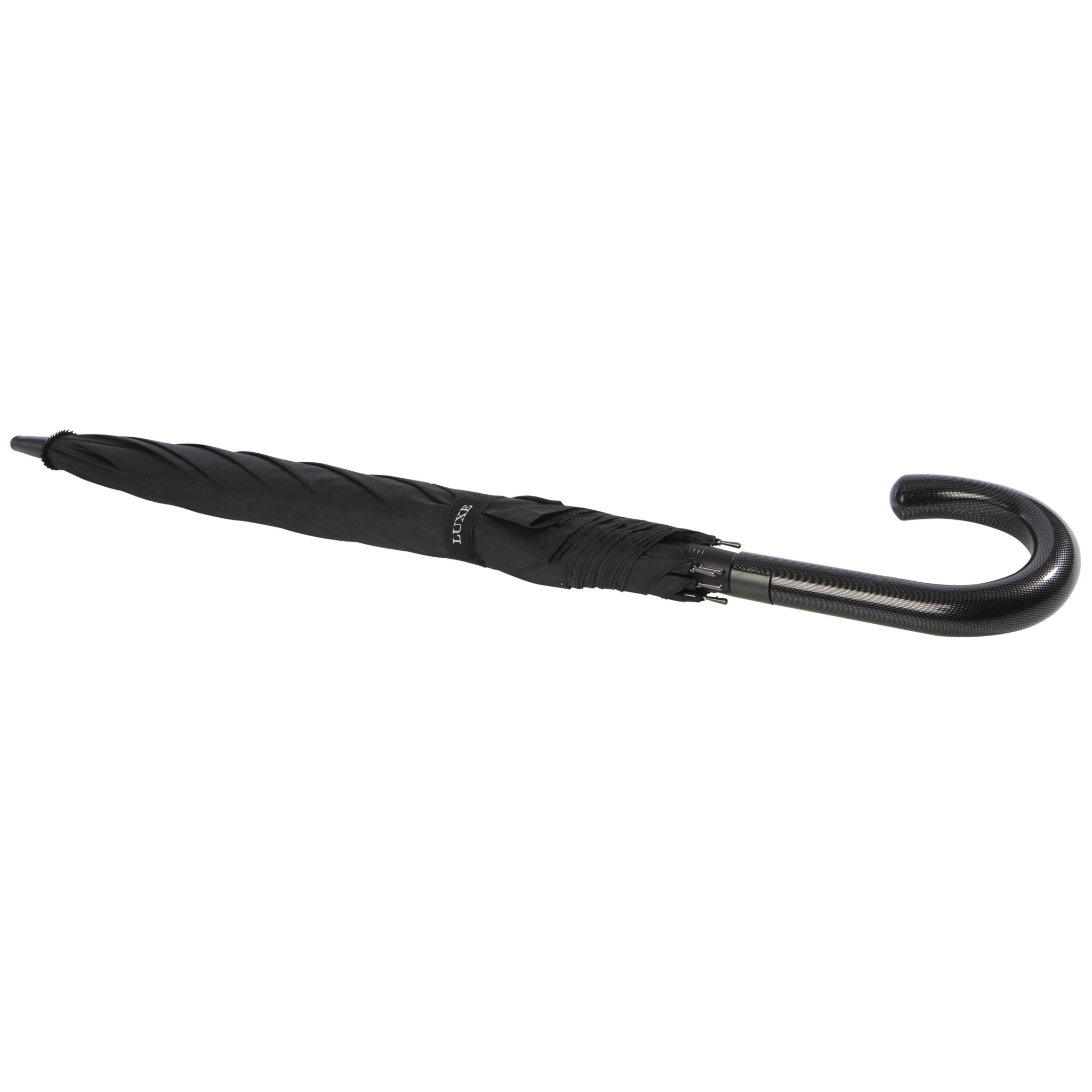 Automaattisesti avautuva sateenvarjo, pongee-polyesterikankaalla, tukeva mustapintainen metallivarsi. Laadukas lasikuitukehikko joustaa erinomaisesti tuulisissa olosuhteissa. Koukkukahva. Luxe-merkit kuvussa ja suljentanauhassa. Suuri logomerkintäalue jokaisessa paneelissa.