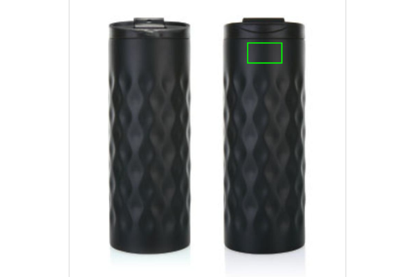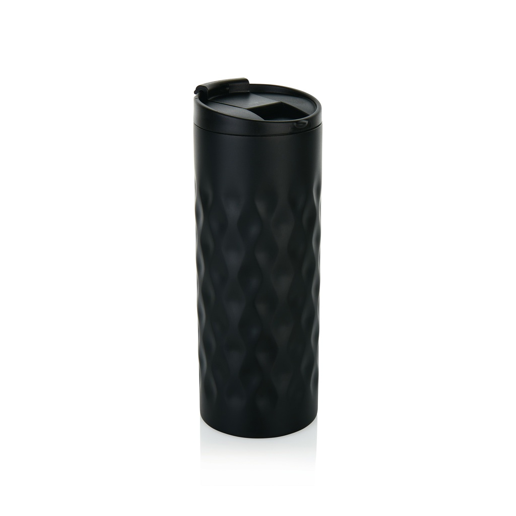 Juomamuki ruostumatonta terästä, kaksoisseinämä. Koristeltu trendikkäällä geometrisellä kuviolla. Kapasiteetti 350 ml.