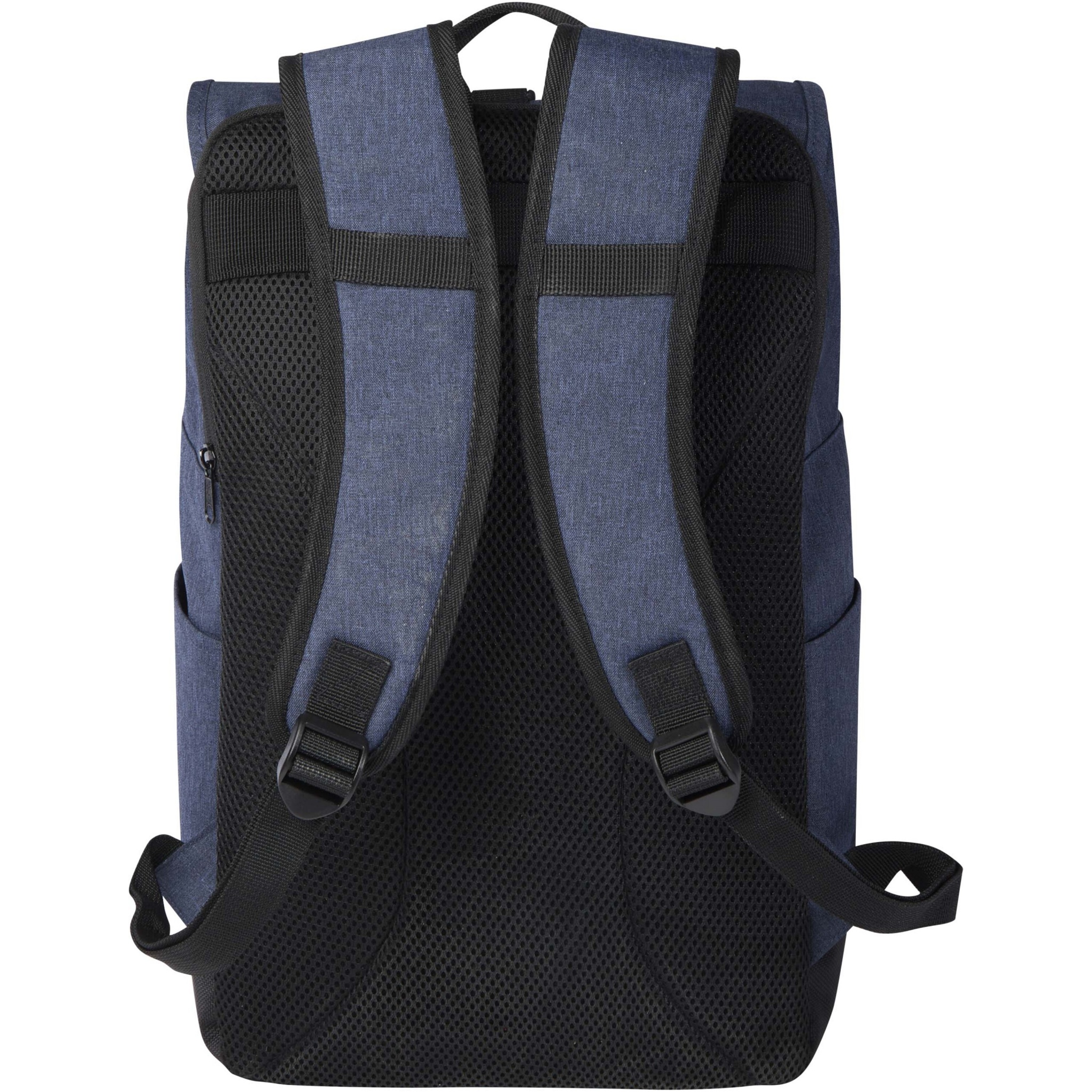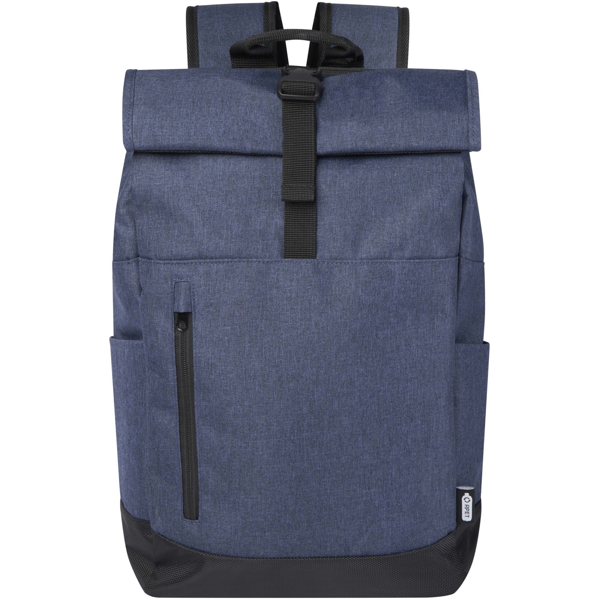 15,6" kannettavalle reppu, jossa on pehmustettu tietokoneosio, pehmustetut ja säädettävät olkahihnat, vetoketjullinen pääosio rullattavalla yläosalla, kaksi kantokahvaa ja vetoketjutasku.