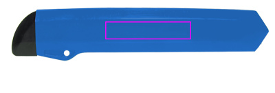 Muovinen pahviveitsi irrotettavalla terällä (seitsemän teräosaa). Painamme logosi muovikotelon suljettuun osaan.
