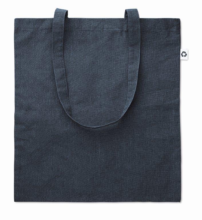140 gr/m² kierrätetystä puuvillasta valmistettu 2 sävyinen kangaskassi, pitkillä kahvoilla (20%/80%). Tuote voi kutistua painatuksen aikana.