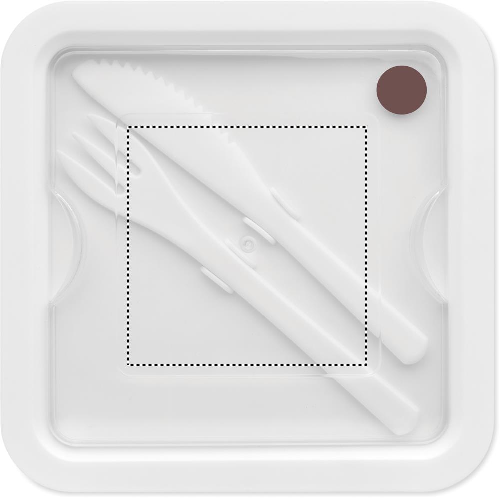 600 ml PP lounasrasia kahdella lokerolla ja PP aterimilla.