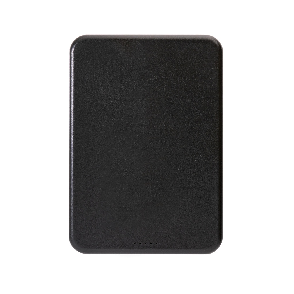 5.000 mAh:n taskukokoinen virtapankki, jossa on 5W:n magneettinen langaton laturi. Kotelo on valmistettu RCS-sertifioidusta kierrätetystä ABS-muovista. RCS (Recycled Claim Standard) on standardi, jonka avulla tuotteen kierrätyspitoisuus voidaan todentaa koko toimitusketjussa. Kierrätetyn materiaalin kokonaismäärä: 20% tuotteen kokonaispainosta.Tehopankki sisältää pitkäikäisen A-luokan 5000 mAh:n litiumpolymeeriakun. Virran merkkivalot ilmoittavat jäljellä olevan energiatason, joten tiedät aina, milloin on aika ladata tuote uudelleen.; C-tyypin tulo 5V/2.4A; C-tyypin lähtö: 5V/2A.4A Tuote ja tarvikkeet PVC-vapaita. Mukana RCS-sertifioitu kierrätetty TPE-latauskaapeli. Pakattu FSC® mix -pakkaukseen.
