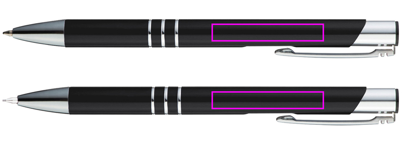 Alumiinista valmistettu kirjoitussetti, joka koostuu kuulakärkikynästä, jossa on sininen kirjoitus suuri täyttöpakkaus ja mekaaninen lyijykynä, jokaisessa koristerenkaat. Logosi kaiverretaan leikkeen oikealle puolelle.