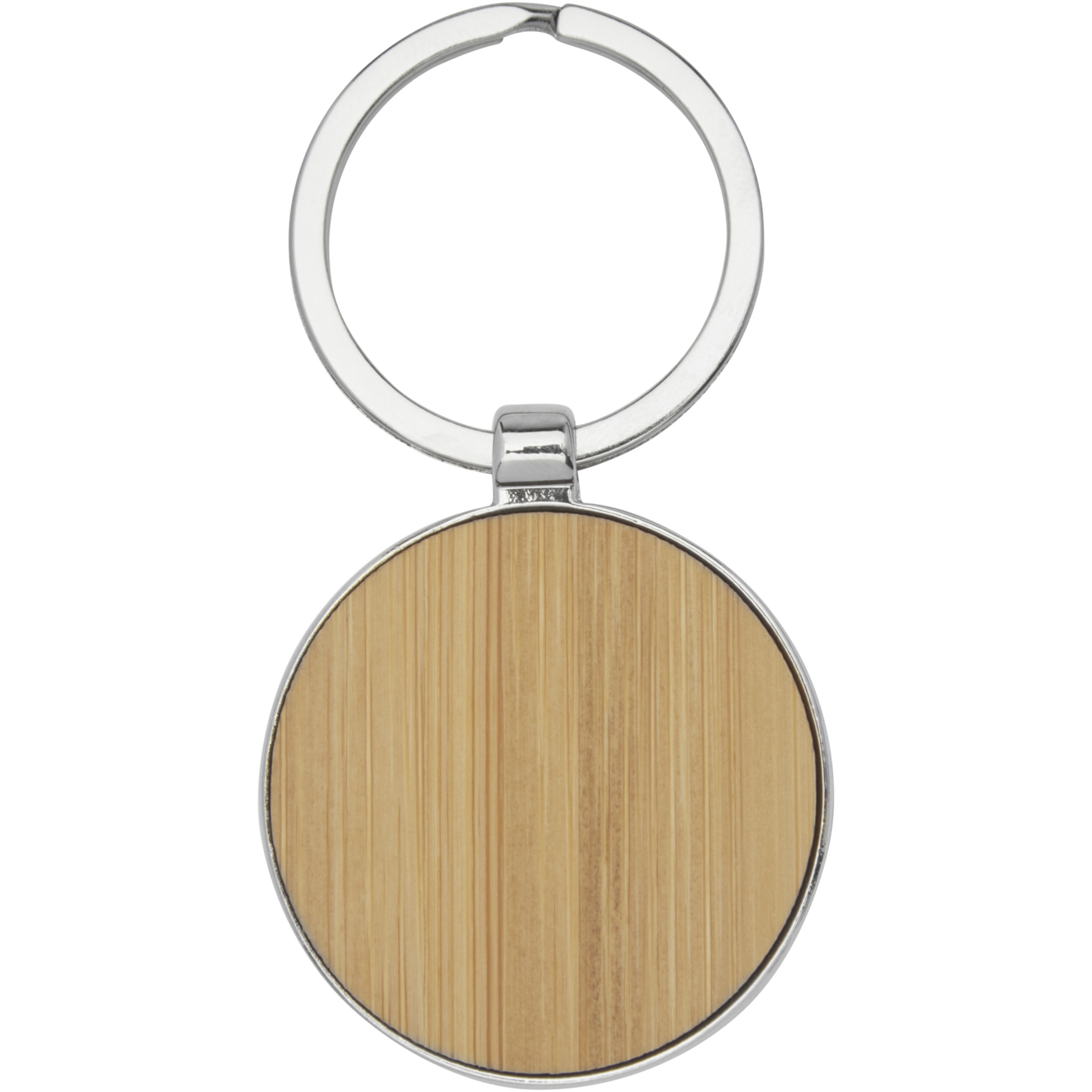 Erinomaista laatua oleva bambusta valmistettu pyöreä avaimenperä sinkkiseoksesta tehdyllä metallikehyksellä, joka toimitetaan ruskeassa kierrätyspaperikuoressa. Avainketjun halkaisija on 4 cm. Tehty laserkaiverruksia varten.
