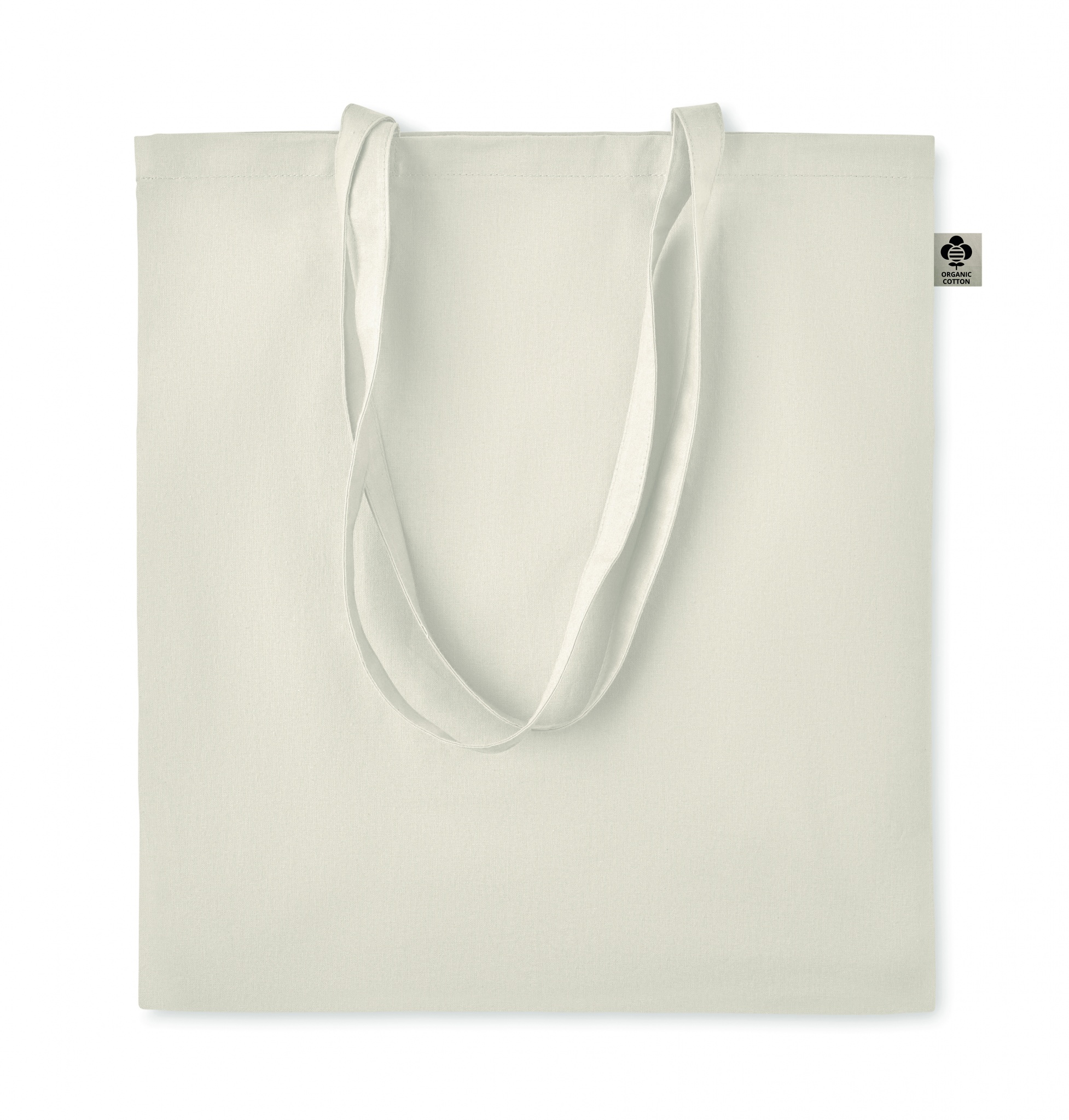 140 gr/m² 100% luomupuuvillasta valmistettu kassi, pitkillä kahvoilla.