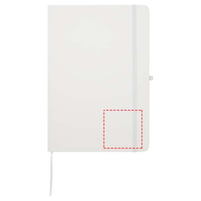 Kovakantinen Spectrum Plus A5-muistikirja pyöristetyillä kulmilla on välttämätön toimistotarvike ja lisäksi loistava tilaisuus mainostaa brändiäsi. Muistikirjan kansi on pehmeän tuntuinen ja se sisältää 80 kermanväristä 70 g/m²:n viiva-arkkia, jotka ovat ihanteellisia nopeiden ideoiden tai pitkien muistiinpanojen kirjoittamiseen. Muistivihkossa on kynälenkki, kuminauhasuljin, kirjanmerkkinaru ja haitaritasku.