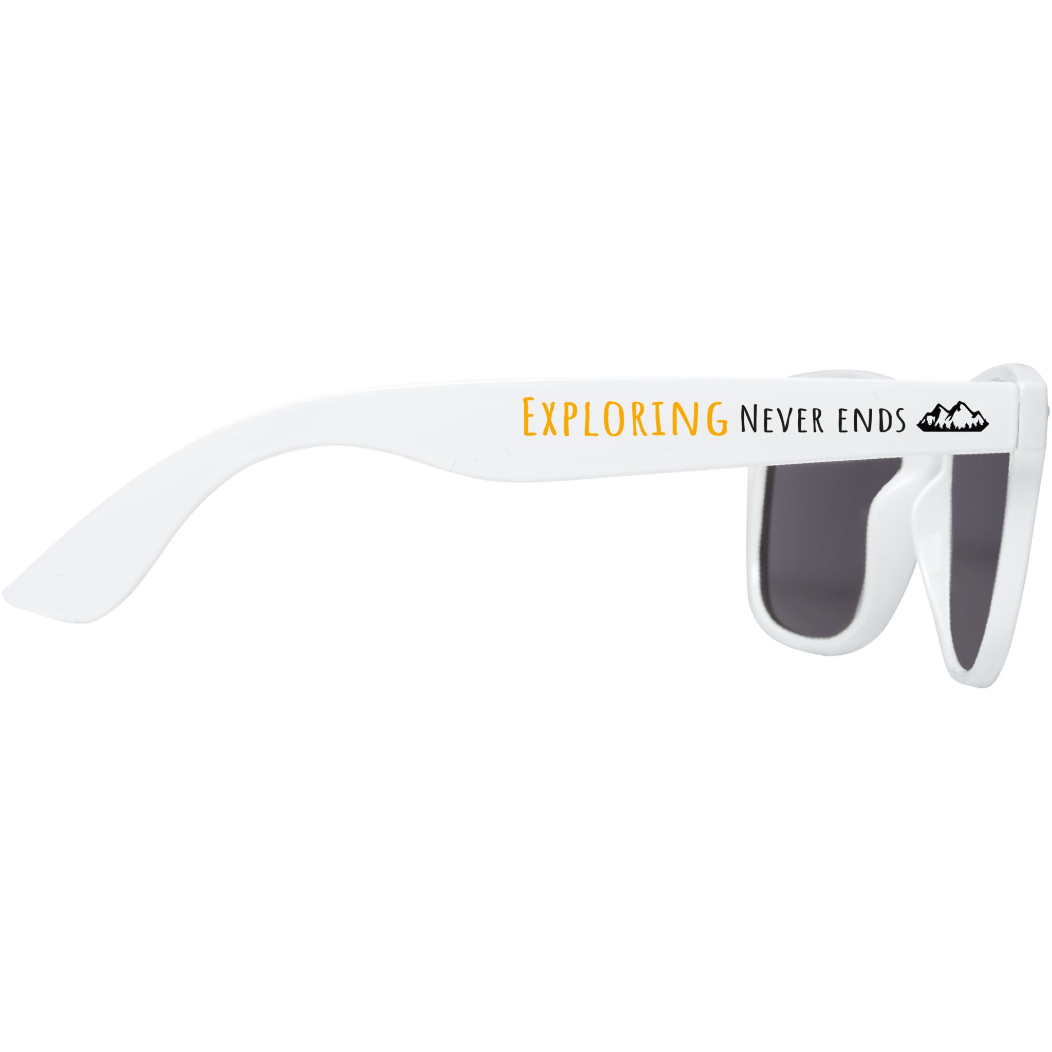Nämä vastuullset aurinkolasit ovat ihanteellinen mainoslahja kesäfestivaaleilla, tapahtumissa tai muissa aurinkoisissa ulkoaktiviteeteissa. Valmistettu kierrätetystä muovista. Näissä EN ISO 12312-1 -standardin mukaisissa aurinkolaseissa on luokkaan 3 kuuluvat UV400-linssit.