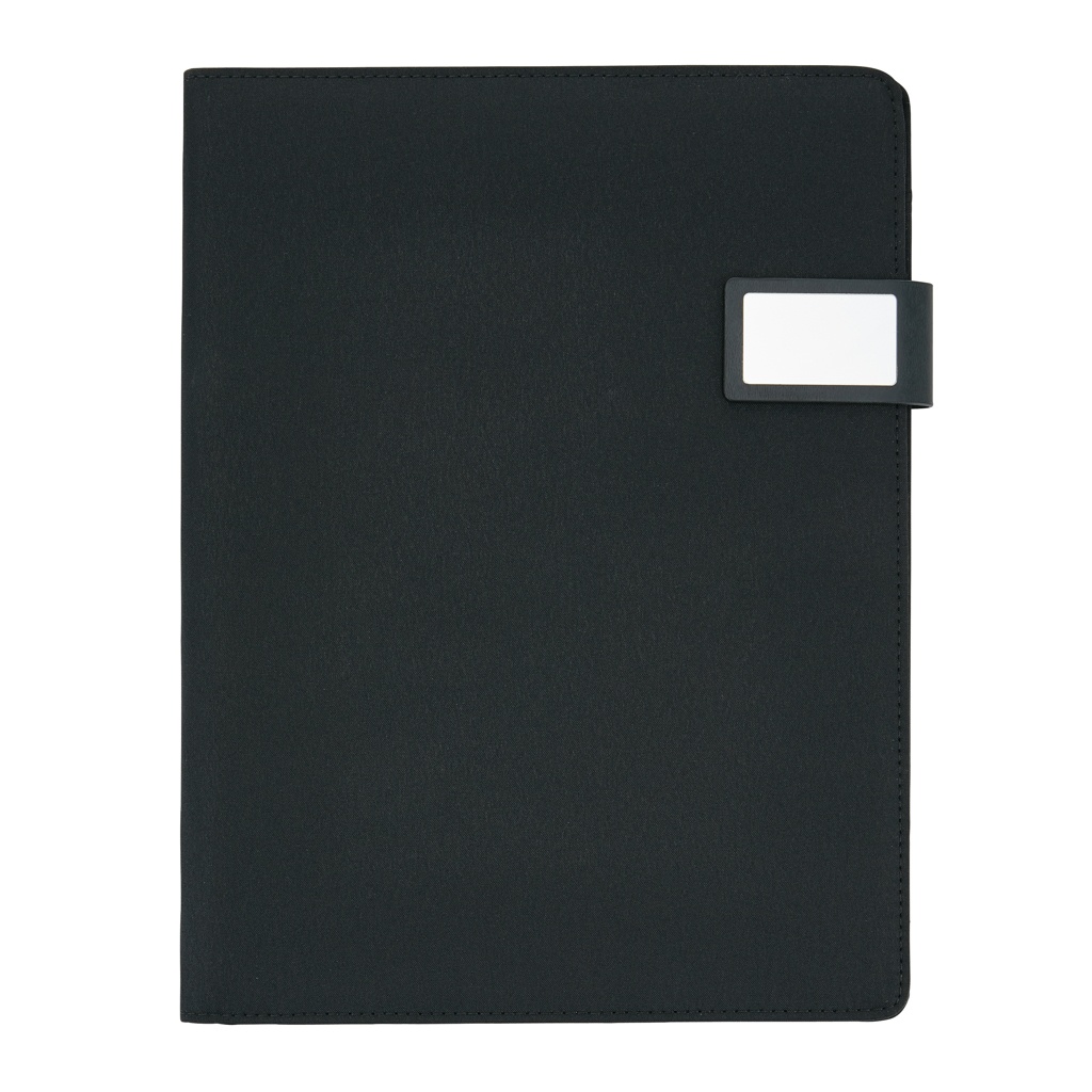 A4 tekninen kansio magneettisulkimella. Sisältää tabletti-/matkapuhelintelineen ja puhelinpidikkeen läpinäkyvällä ikkunalla, jonka avulla voit käyttää laitettasi. Sopii yleisimpiin puhelimiin, kuten iPhone 6 ja Samsung S6. Tasku papereita ja 2 korttia varten. Mukana myös kynälenkki. Sisältää 1 kierrätetyn A4 muistilehtiön 20 sivulla.