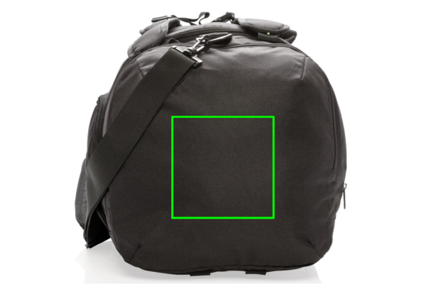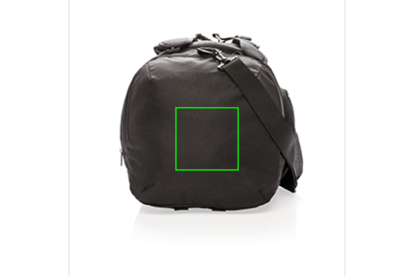 Lengvas 1680D ir 600D poliesterio maišelis 2 viename. Veikia ir kaip kuprinė, ir kaip kuprinė. Yra erdvus pagrindinis skyrius su U formos viršutiniu užtrauktuku, šoninis batų arba nešvarių drabužių skyrius ir šoninė kišenė su užtrauktuku. Nugara su kišene buteliuko laikikliu ir greito priėjimo kišene. Priekinė kišenė su užtrauktuku su 2 RFID apsaugotomis rankovėmis. Reguliuojami pečių dirželiai, užtikrinantys patogumą ir universalumą. Be PVC.