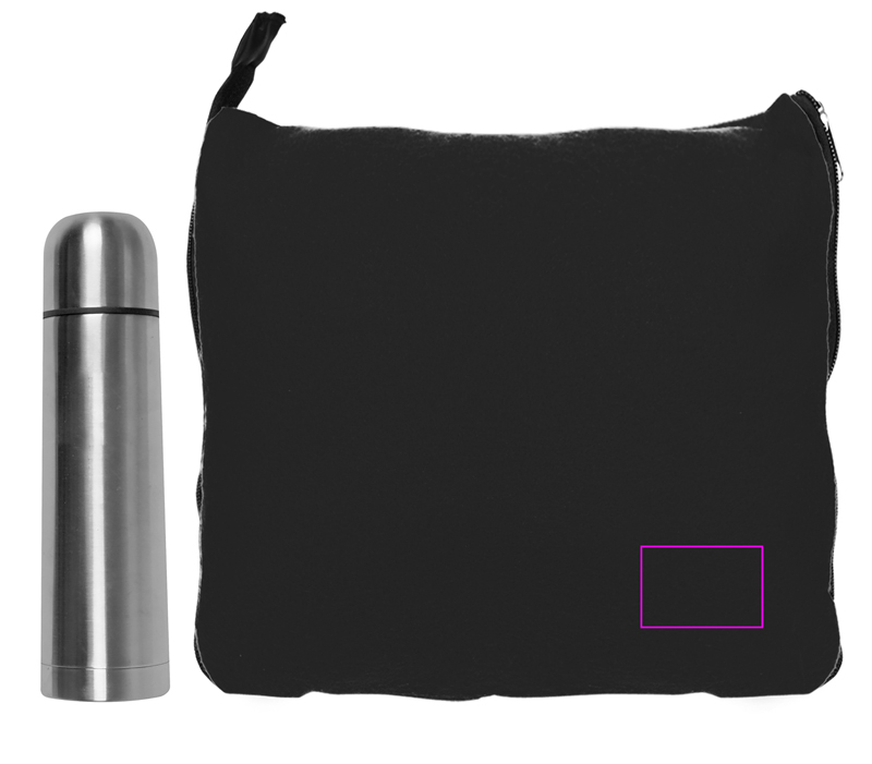 Tobulas duetas! Jūsų klientai turės viską, ko reikia jaukiam vakarui ar kelionei su šiuo gražiu rinkiniu. Jūs gausite gražią vilnonę antklodę du viename (180 x 120 cm), kurią užsegamu užtrauktuku ir termokolbą su 500 ml galima paversti pagalve. Jūsų logotipą išgraviruosime ant kolbos arba išsiuvinėsime ant antklodės. Supakuota po vieną dėžutę.