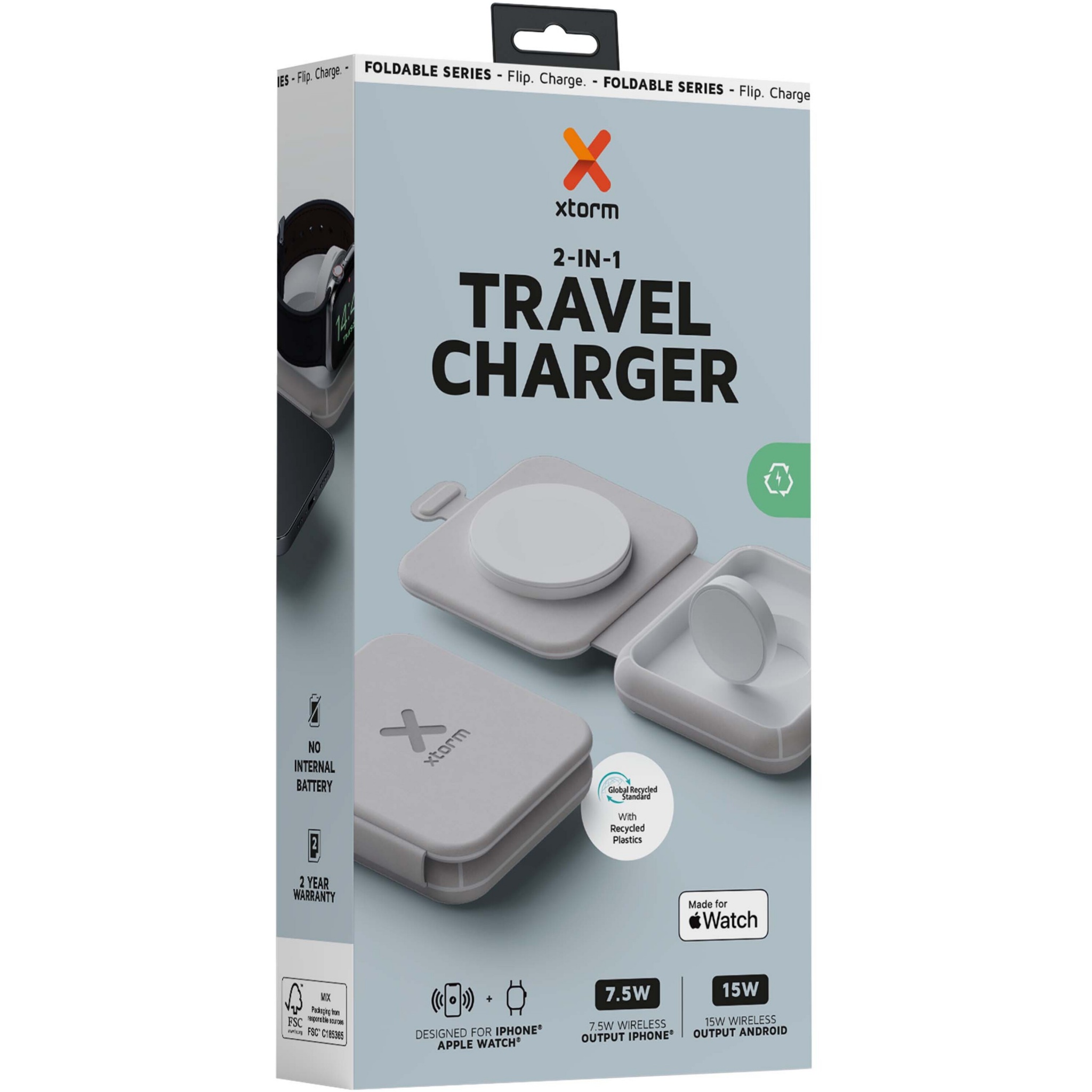 Xtorm XWF21 15W sulankstomas du viename belaidis kelioninis įkroviklis, Pilka