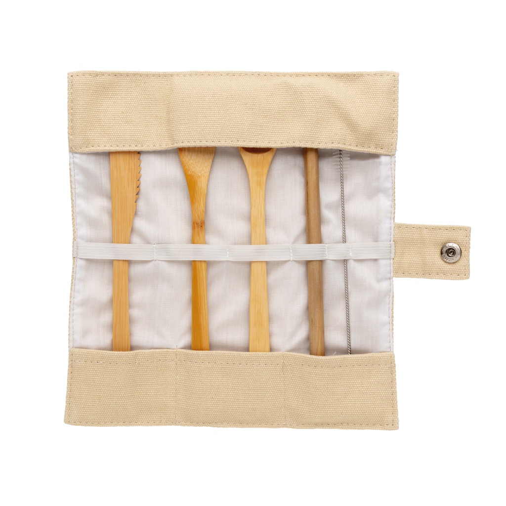 Logotrade dāvanas foto: Atkārtoti lietojams bambusa ceļojumu galda piederumu komplekts