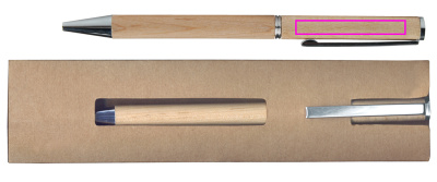 Klasiska koka pildspalva ar zilu plastmasas pildspalvu un kartona maciņu. Mēs iegravējam jūsu logotipu zem klipa.