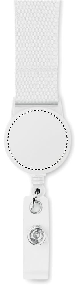 Poliestera štrope ar ievelkamu nozīmītes turētāju un drošības atdalāmu. 20 mm plats. Sublimācijas druka pieejama tikai uz balta izstrādājuma.