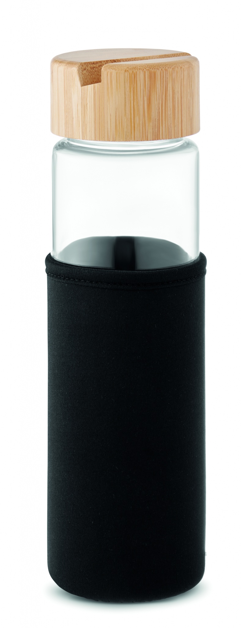 Stikla pudele ar neoprēna uzmavu, bambusa vāku un viedtālruņa statīva funkcionalitāti. Bez noplūdes. Tilpums: 600 ml. Bambuss ir dabisks produkts, katrai precei var būt nelielas krāsas un izmēra atšķirības, kas var ietekmēt gala apdares rezultātu.