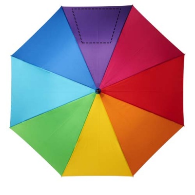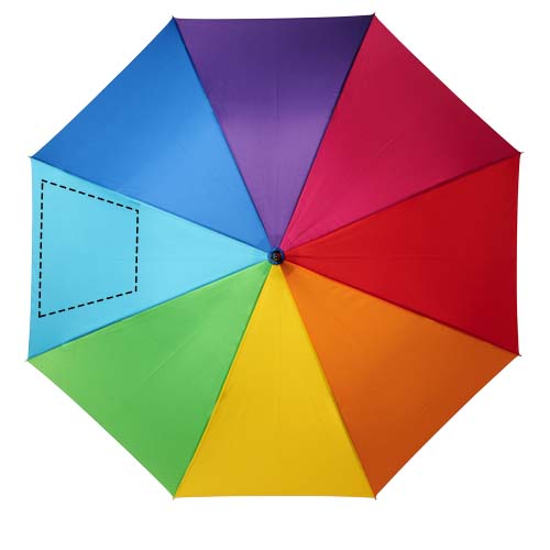 Автоматический зонт с куполом из эпонж полиэстера, раскрашенный в цвета радуги. Прочный металлический стержень, высококачественная цельная рама из стекловолокна, обеспечивающая максимальную гибкость в ветреную погоду. Выгнутая ручка с мягким матовым покрытием, никелированные верхняя втулка и кончики спиц. Большая область для декорирования на каждой из панелей купола позволяет предложить различные креативные решения для логотипа.