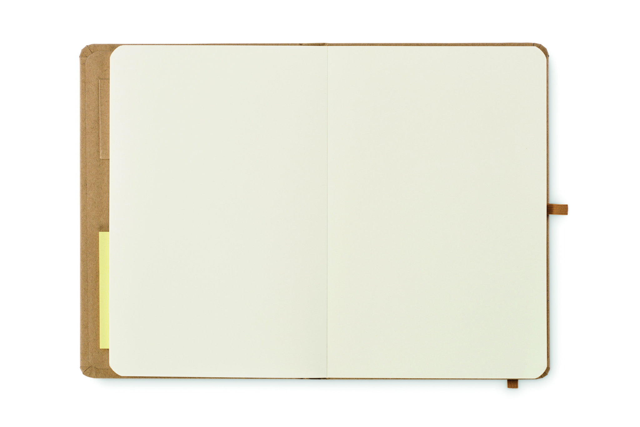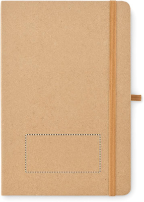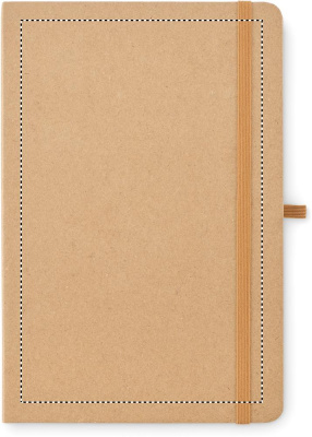 A5 notebook with cardboard cover with 80 sheets recycled paper (160 pages) 25 sheets sticky notes and 25 memo pads. Elastic closure strap and pen loop.