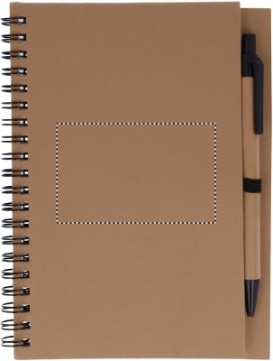 Блокнот с картонной обложкой. Включает 70 страниц вторично переработанной бумаги и синюю шариковую ручку из биопластика.