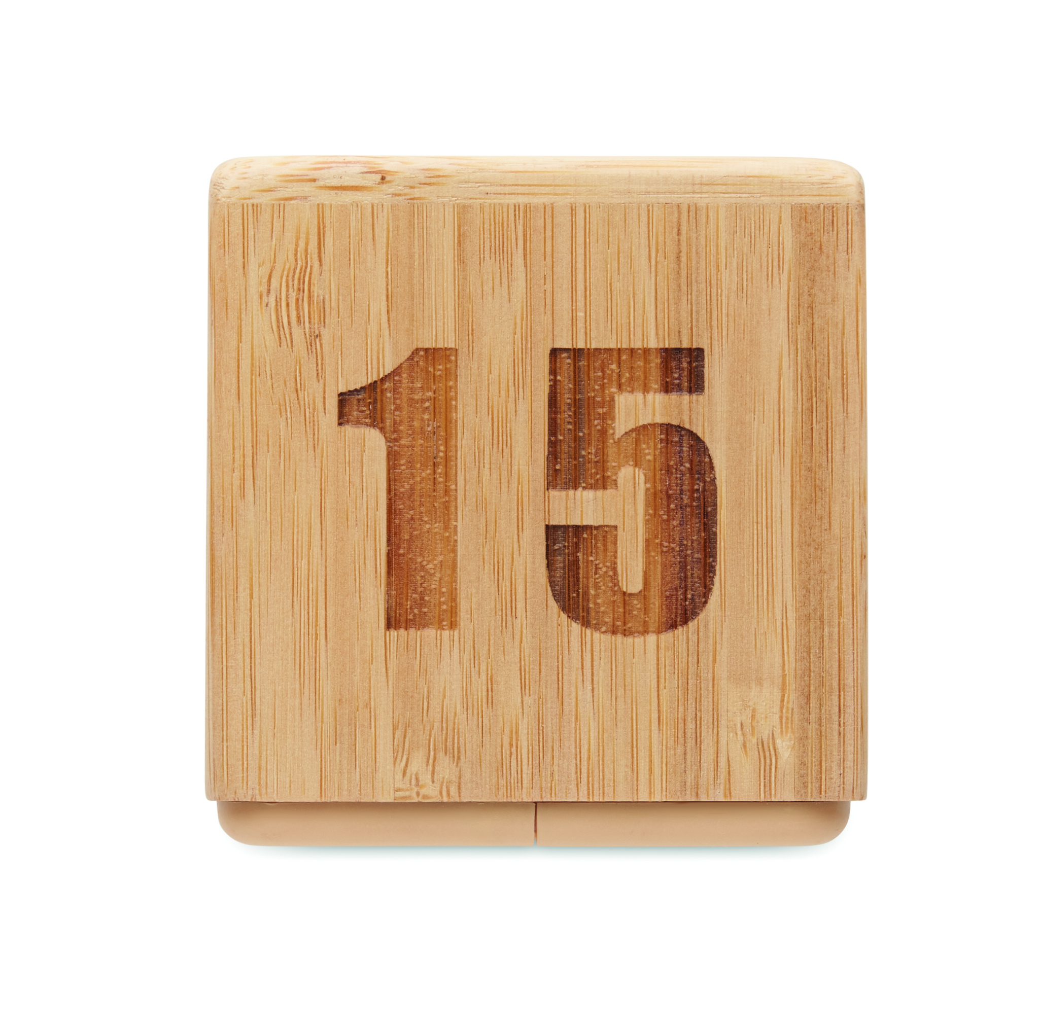 Bamboo twist snooze timer with countdown time display. Battery-powered. 2 x AAA batteries (not included).