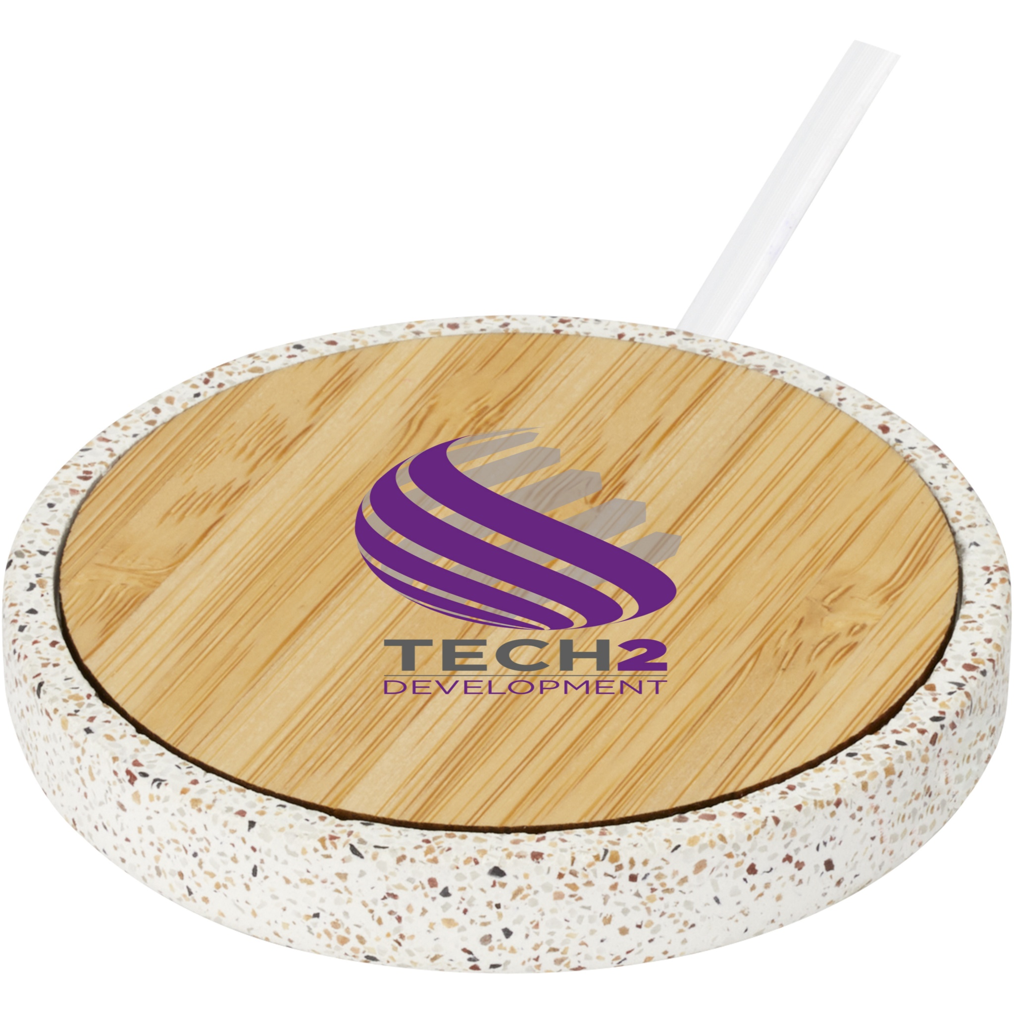 Лого трейд pекламные cувениры фото: Бамбуковое беспроводное зарядное устройство Terrazzo мощностью 10 Вт