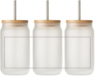 Емкость для коктейлей со специальным покрытием для сублимации с бамбуковой крышкой. В комплект входит соломинка из нержавеющей стали. Объем: 400 мл.