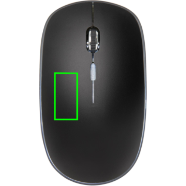 Удобная конструкция и перезаряжаемая беспроводная мышь с возможностью гравировки вашего логотипа, который будет светиться для дополнительной узнаваемости вашего бренда. Мышь имеет перезаряжаемую литий-полимерную батарею емкостью 300 мАч, которую можно перезаряжать за три часа. Скорость соединения 125 Гц через входящий в комплект и простой в установке USB-ключ. С левой и правой кнопкой щелчка и средней кнопкой прокрутки/щелчка. Чувствительность мыши можно легко настроить в соответствии с вашими личными предпочтениями. Совместима со всеми последними операционными системами Windows и Mac