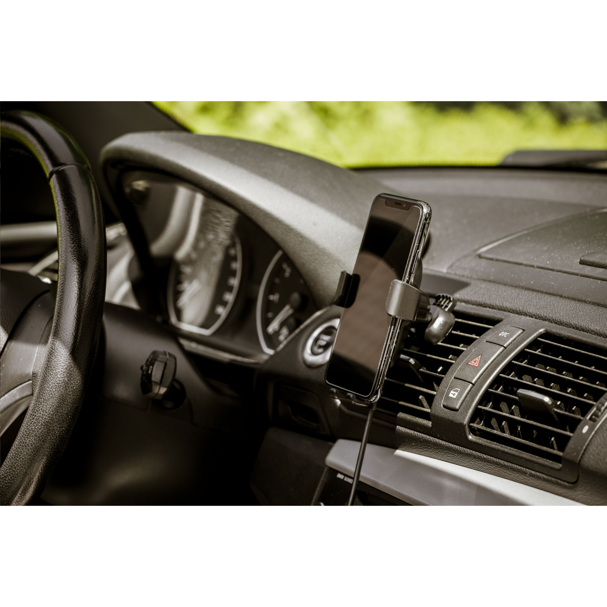 Универсальный автомобильный держатель телефона и зарядное устройство мощностью 10 Вт. Изготовлен из переработанного АБС-пластика. Этот держатель телефона легко устанавливается, подстраивается под размер вашего телефона и может управляться одной рукой. Идеально подходит для спутниковой навигации и для зарядки телефона во время движения. Телефон можно разместить в вертикальном или горизонтальном положении благодаря вращающемуся на 360 ° зажиму. Беспроводное зарядное устройство мощностью 10 Вт совместимо с устройствами, поддерживающими беспроводную зарядку QI (последние поколения Android и iPhone). Вход: 5 В/2 А. Беспроводной выход: 5/2 А 10 Вт. В комплект входят кабель micro-USB (TPE) и инструкция по эксплуатации. Этот продукт и его аксессуары не содержат ПВХ. Каждый предмет упакован в индивидуальную коробку.