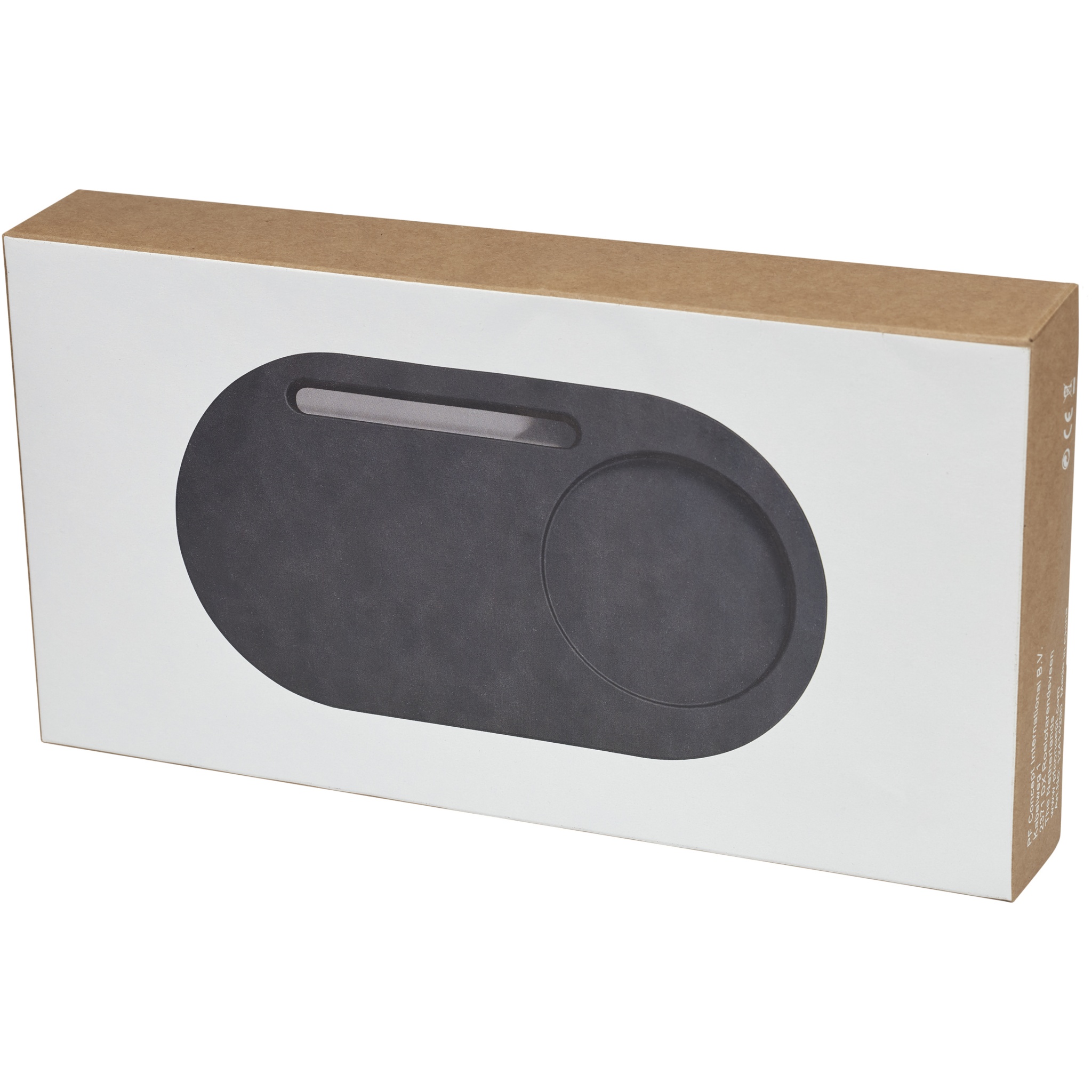 Беспроводное зарядное устройство-подставка на 5 Вт, изготовленное в сочетании из натурального известняка и пробкового дуба. Позволяет заряжать устройства, которые не поддерживают беспроводную зарядку, с помощью внешнего приемника беспроводной зарядки или чехла-приемника. Поставляется в подарочной упаковке, которая на 100 % сертифицирована FSC. В комплекте содержится инструкция, выполненная по стандарту FSC. В комплект входит USB-кабель длиной 1 м.
