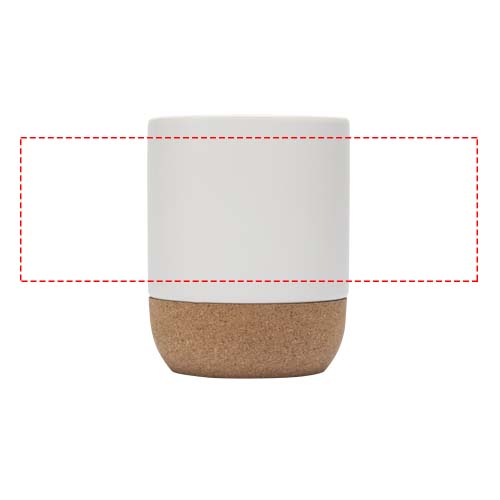 Керамическая кружка с пробковым узором на дне и специальным покрытием снаружи, позволяющим наносить сублимационную печать. Глянцево-белая внутренняя и внешняя часть. Мыть вручную в теплой воде с мягкими моющими средствами. Поставляется в подарочной коробке из переработанного картона. Объем: 300 мл.
