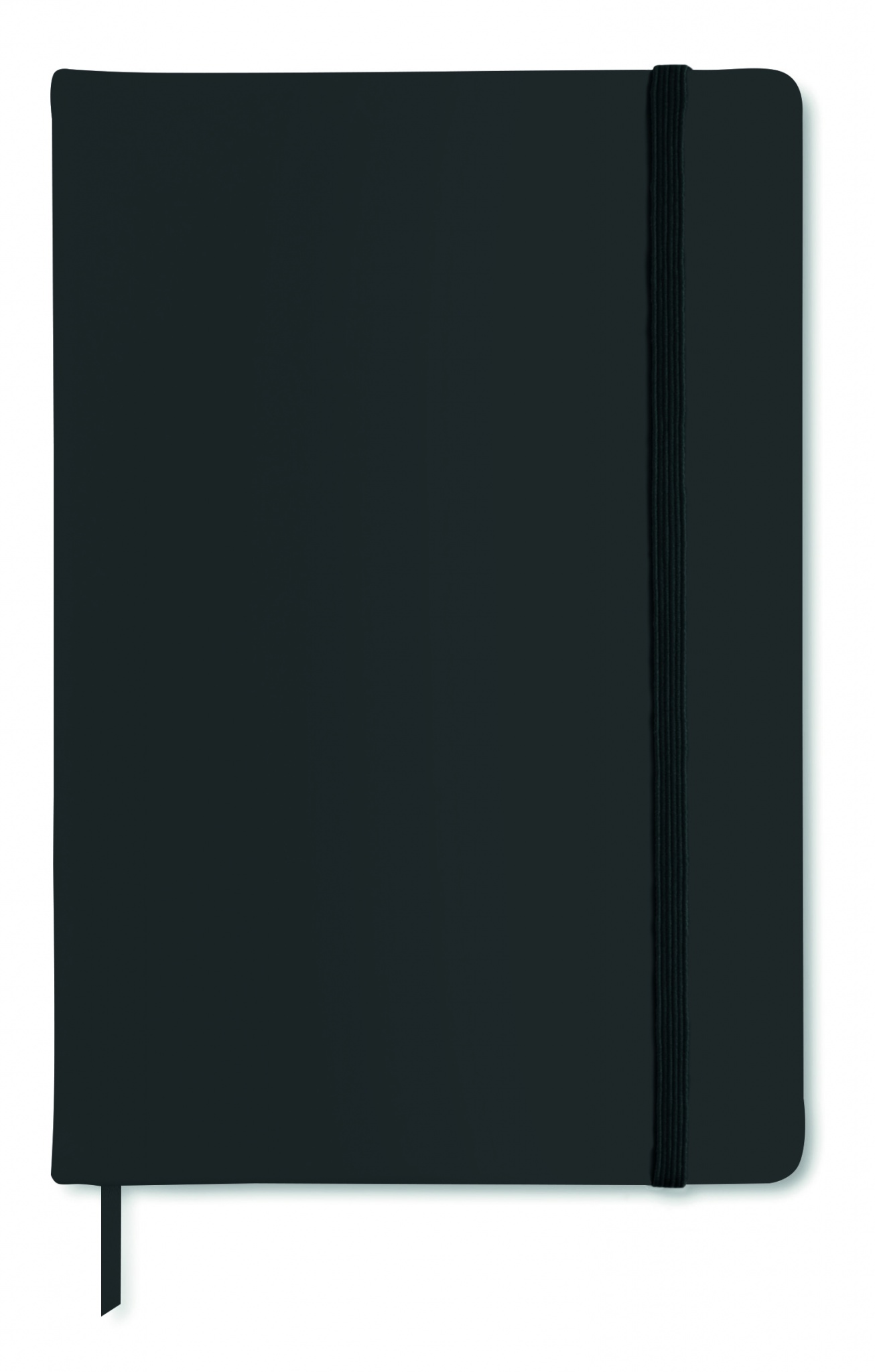 Блокнот формата А6 в обложке из полиуретана на резинке. 96 линованых страниц.