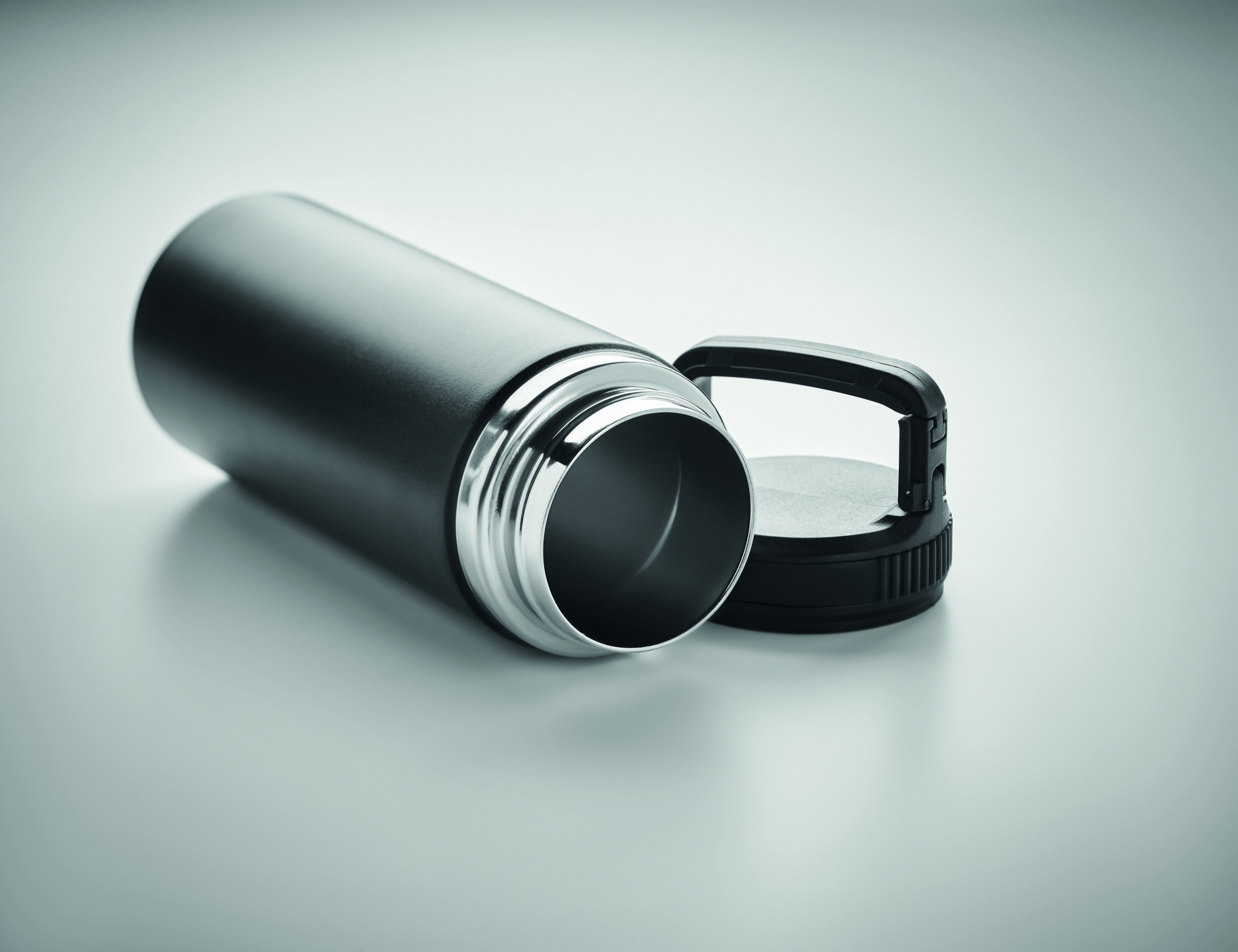 Термобутылка из нержавеющей стали с двойными стенками и удобной ручкой на крышке. Емкость: 500 мл.