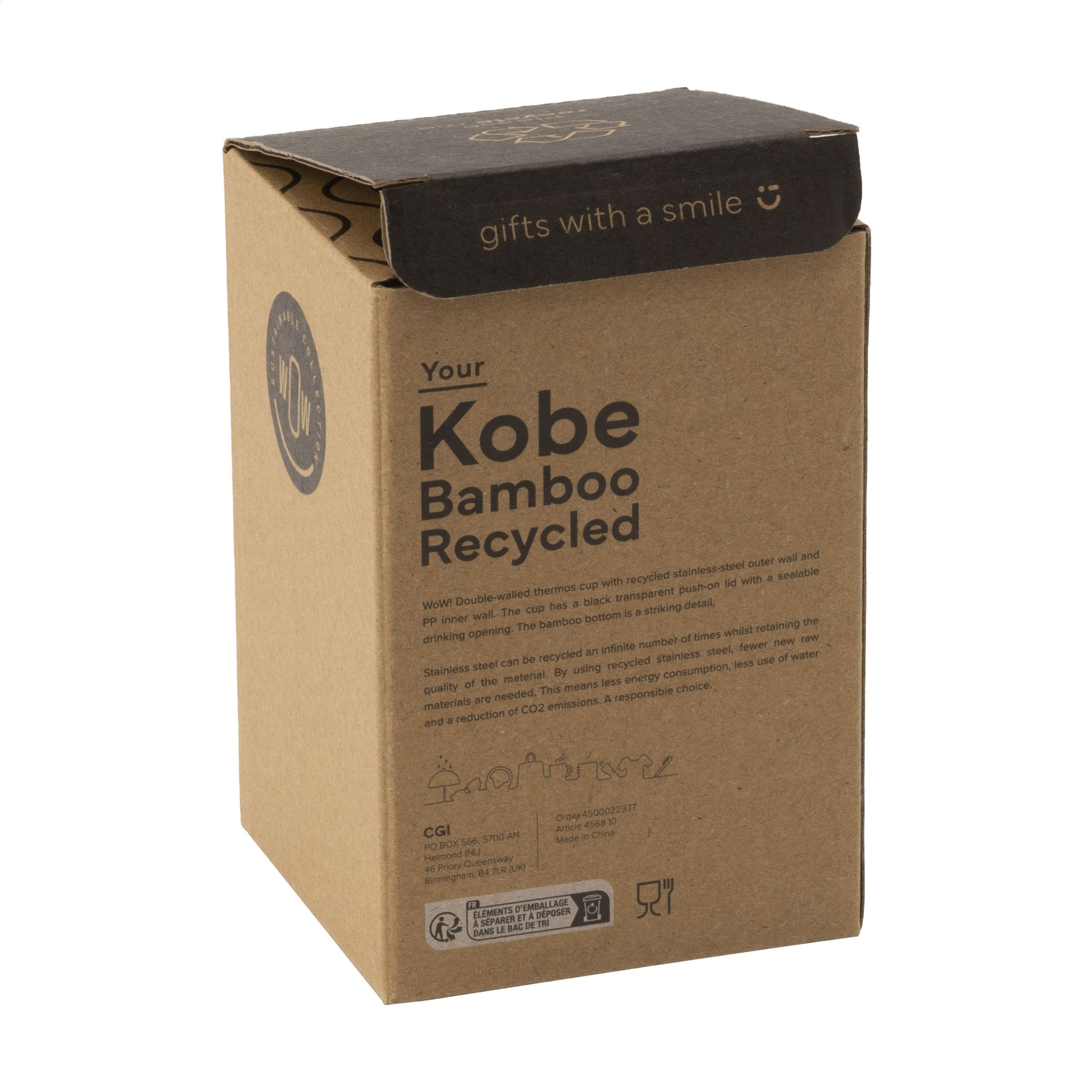 WoW! Термокружка с двойными стенками, наружная стенка из переработанной нержавеющей стали и внутренняя стенка из полипропилена. У кружки черная прозрачная нажимная крышка с герметичным отверстием для питья. Бамбуковое дно — яркая деталь толщиной 1,5 см. Сертифицировано RCS. Общее количество переработанного материала: 38%. Емкость 350 мл. Нержавеющая сталь может перерабатываться бесконечное количество раз, сохраняя при этом качество материала. При использовании переработанной нержавеющей стали требуется меньше нового сырья. Это означает меньшее потребление энергии, меньшее использование воды и сокращение выбросов CO2. Ответственный выбор. Каждый предмет поставляется в индивидуальной коричневой картонной коробке.
