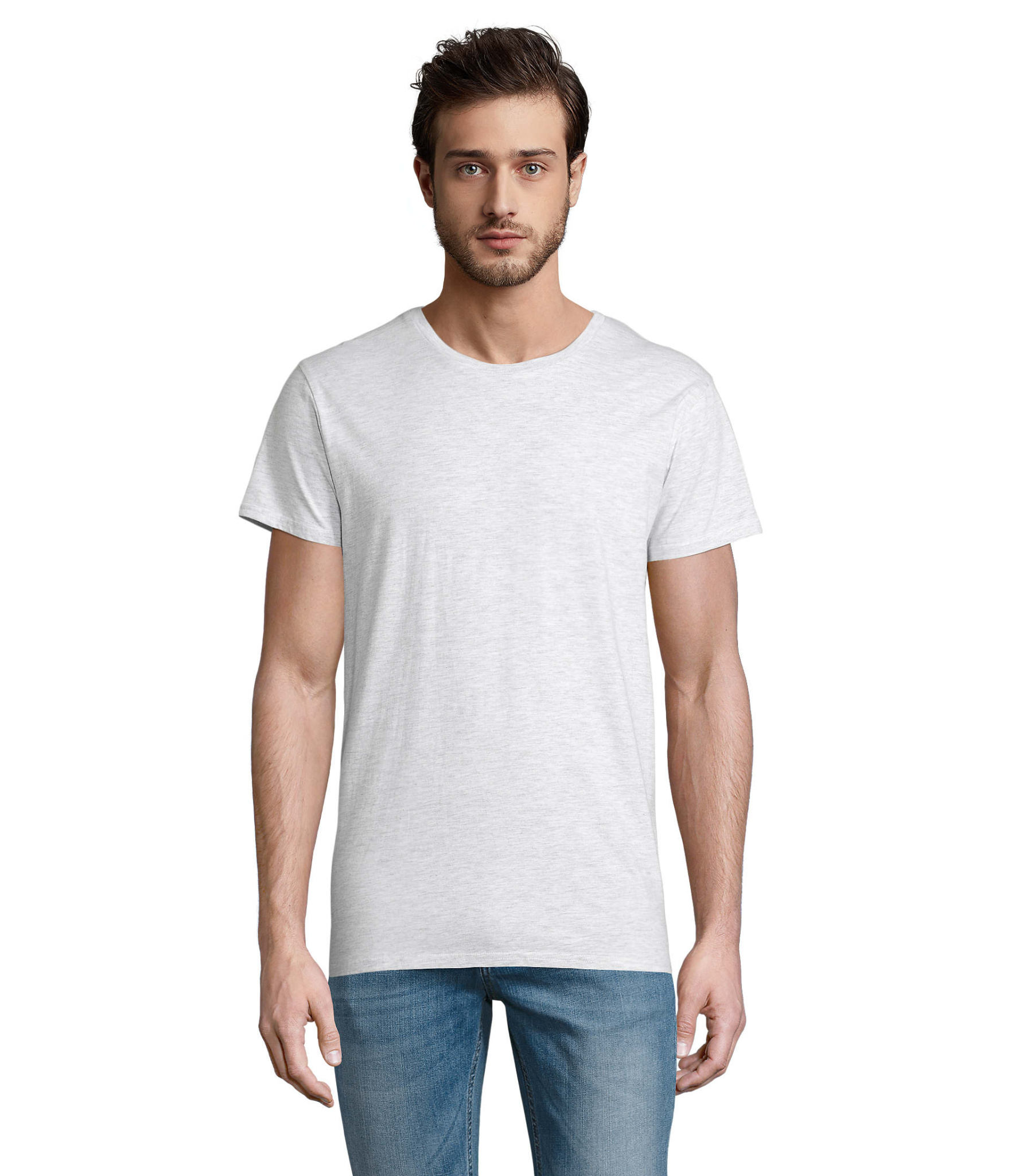SOL'S CRUSADER MEN, Мужская облегающая футболка из джерси с круглым вырезом, 100% органически выращенный хлопок, натуральная отделка для более мягкого и гладкого ощущения, джерси 150, 100% хлопок, ребристый воротник, круглый вырез, лента на шее, облегающий крой, трубчатый, (1) Heather Light Green : 60 % органического хлопка / 40 % переработанного полиэстера, (2) Heather Pink : 60 % органического хлопка / 40 % переработанного полиэстера, (3) Heather Beige : 60 % органического хлопка / 40 % переработанного полиэстера, (4) Ash : 98 % органического хлопка / 2 % вискозы, (5) Grey Melange : 85 % органического хлопка документации к изделию.