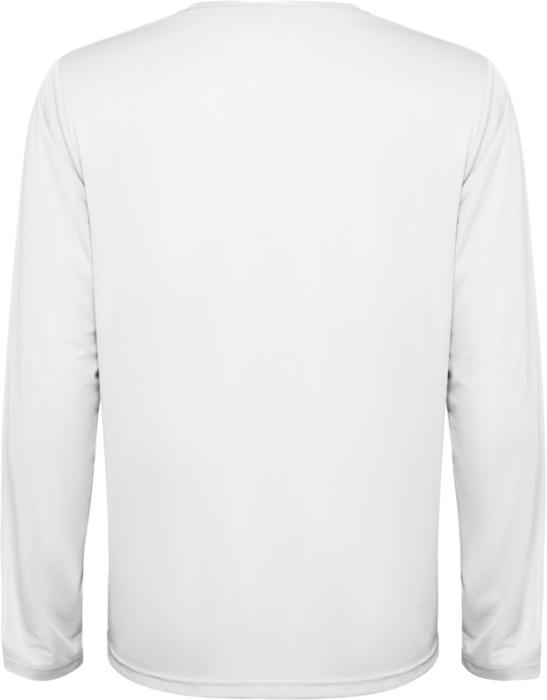Футболка унисекс из технической ткани с длинным рукавом. Воротник со швами в цвет. Подол сзади немного длиннее переда. Боковые швы смещены вперед.