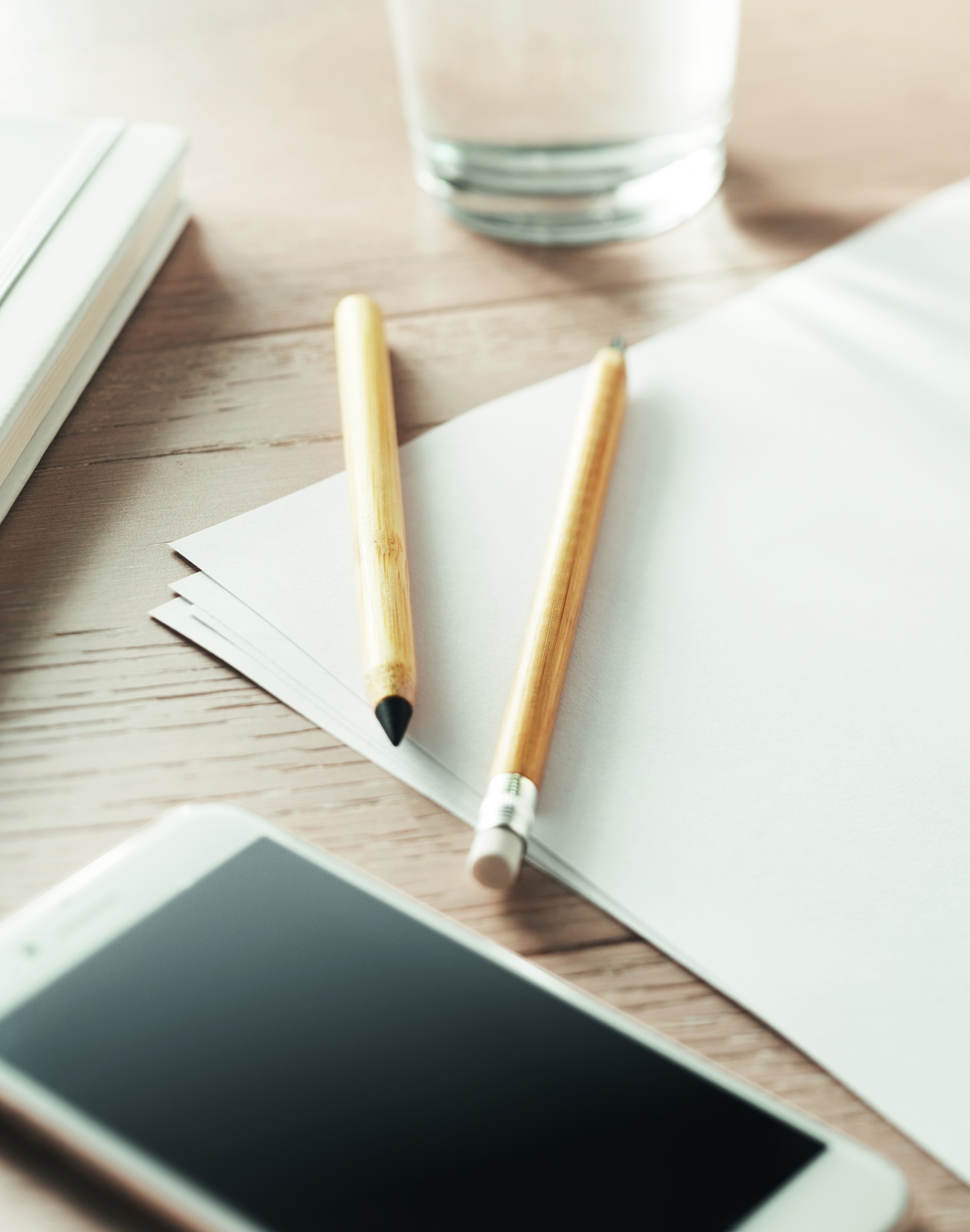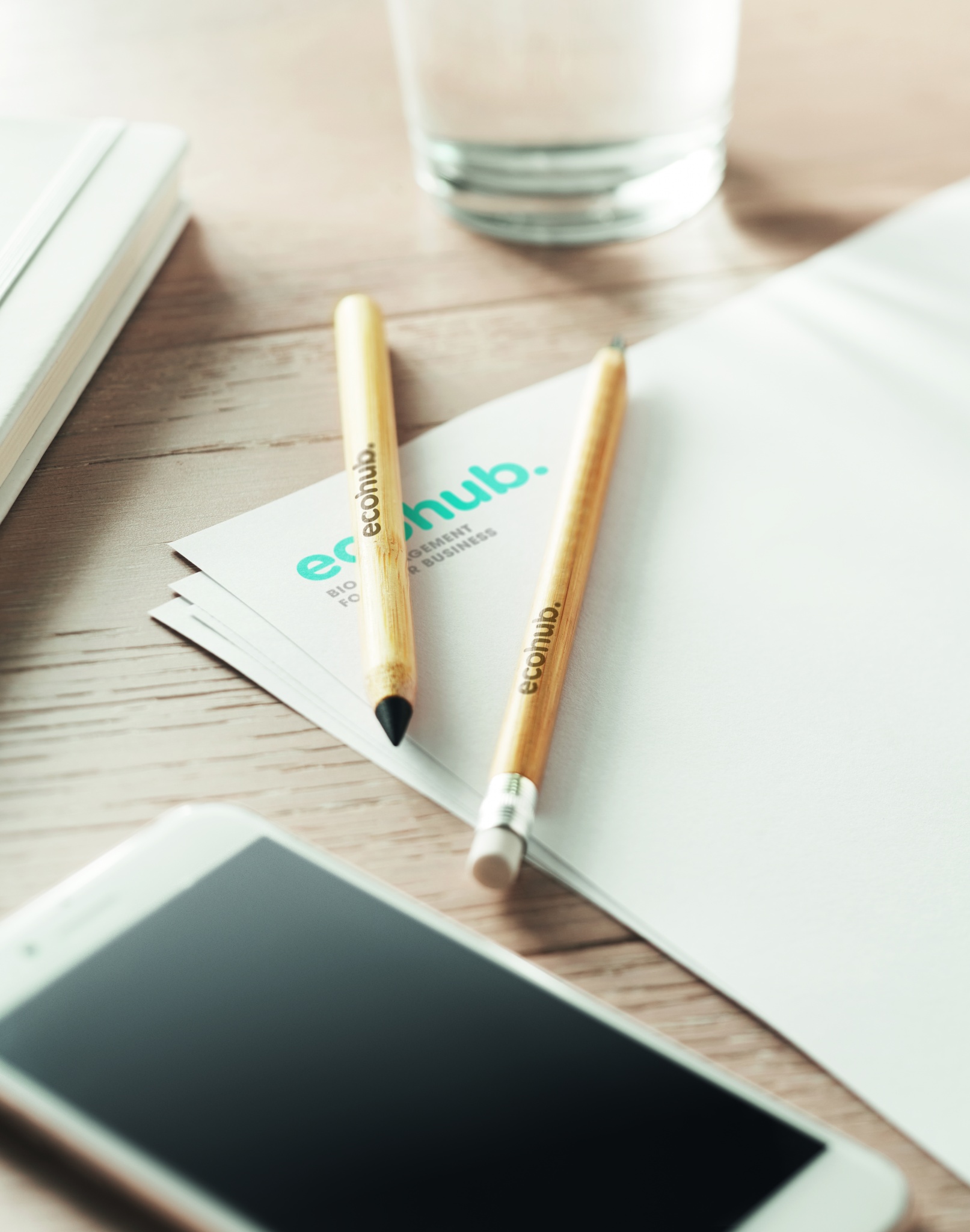 Вечный карандаш в корпусе из бамбука с бумажным колпачком. Карандаш пишет с помощью наконечника из металлического сплава.