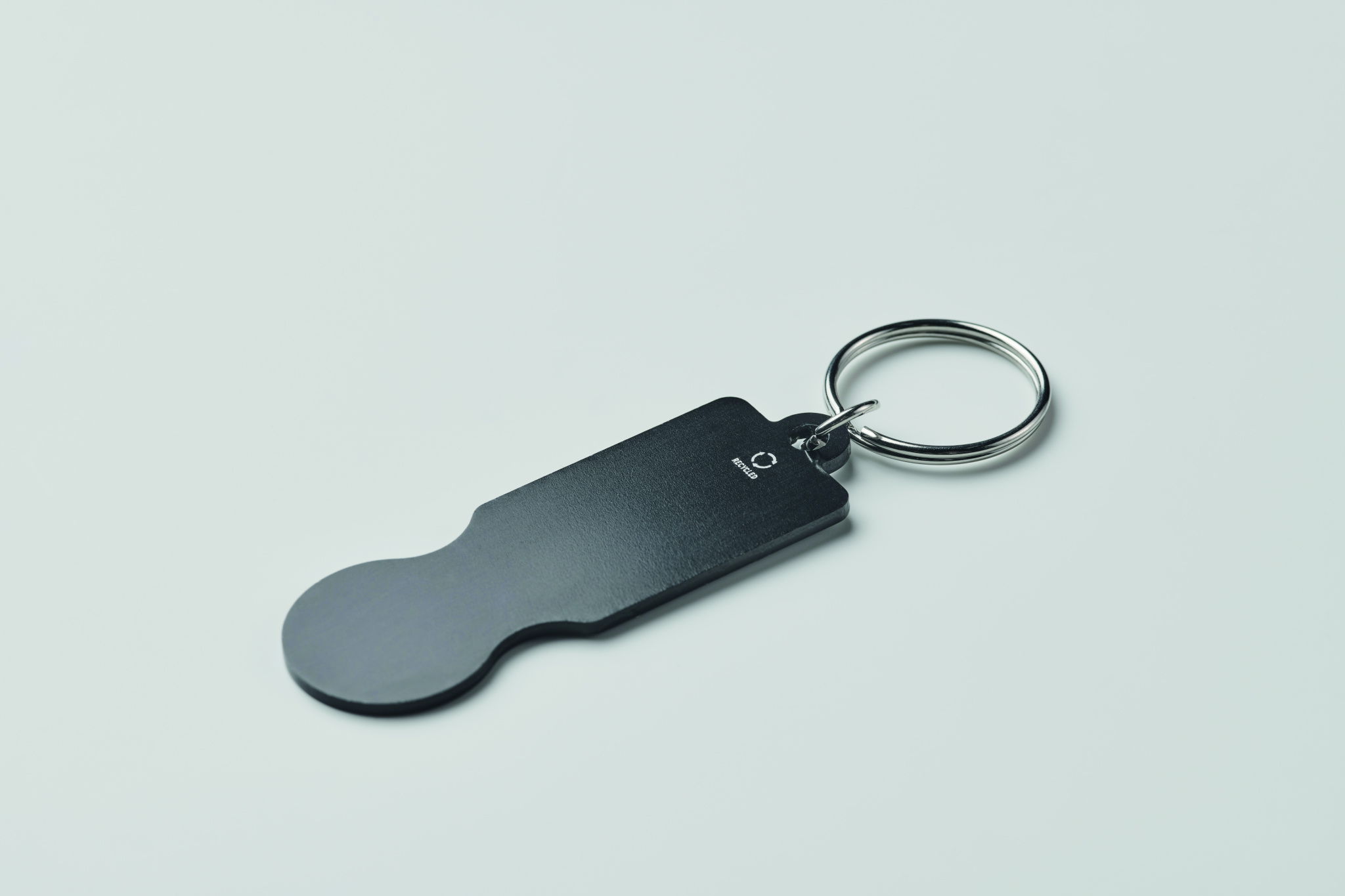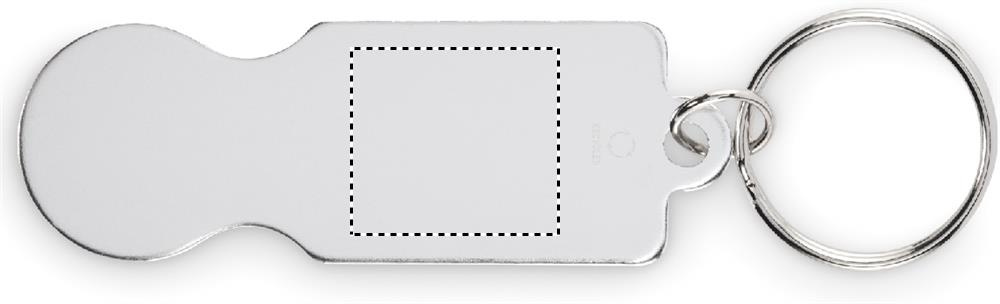 Trolley token with key ring in recycled aluminium.