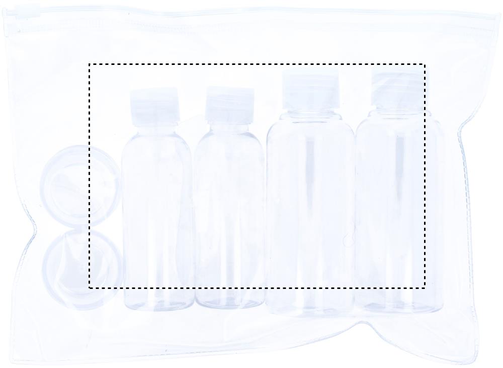 Прозрачная дорожная косметичка с 6 пластиковыми пузырьками для косметических средств. Очень удобно для часто путешествующих. (100ml, 50ml and 10ml)