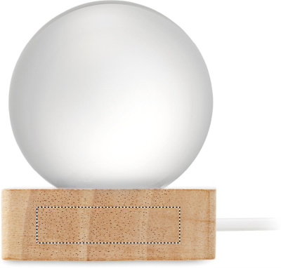 Glass ball with LED light (100 lumens) on a rubber wood base. Includes a USB charging cable (90 cm).