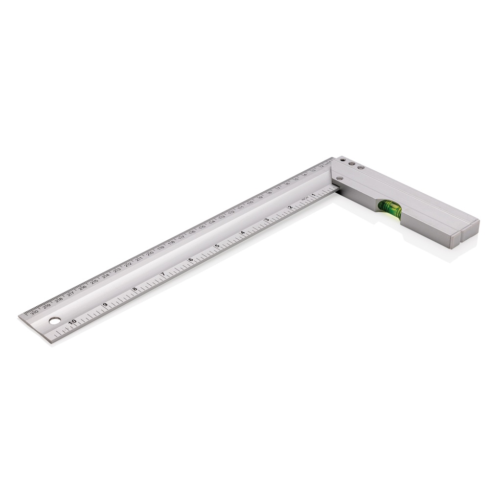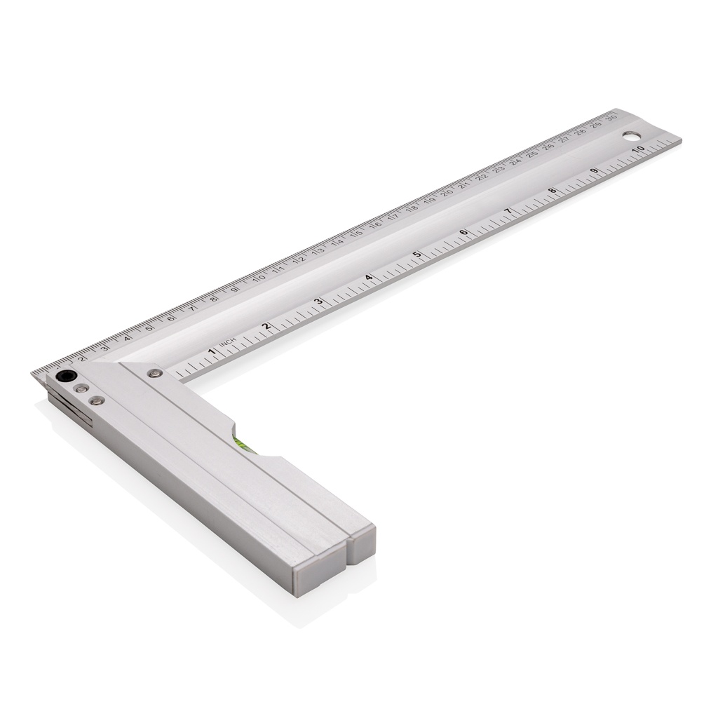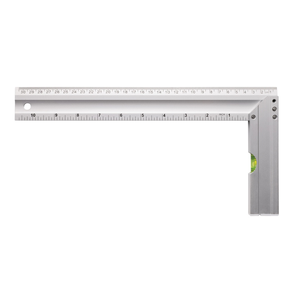 Профессиональная алюминиевая квадратная линейка со встроенным уровнем, оптимальная для измерения углов и черчения квадратов. Двусторонняя печать с индикацией в см (30) и дюймах (10) Точность уровня 0,5 мм
